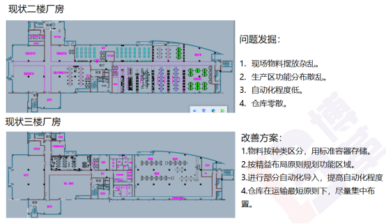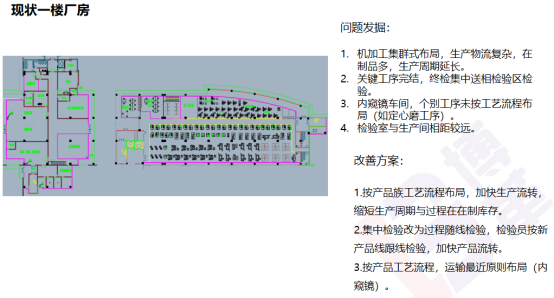 根據(jù)現(xiàn)狀調(diào)查和分析,博革咨詢認(rèn)為,先合理規(guī)劃各樓層功能,再打造連續(xù)流的生產(chǎn)方式,降低成本金額,核心工作是要縮短生產(chǎn)周期、降低中間WIP,提高生產(chǎn)效率,改善現(xiàn)場(chǎng)環(huán)境。