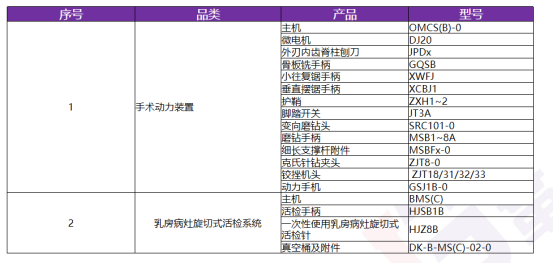 公司主要產(chǎn)品為手術(shù)動(dòng)力裝置整機(jī)、耗材及配件,主要用于外科手術(shù)特別是微創(chuàng)外科手術(shù)中對(duì)骨組織、軟組織的切、磨、刨、鋸、銑、修整等。