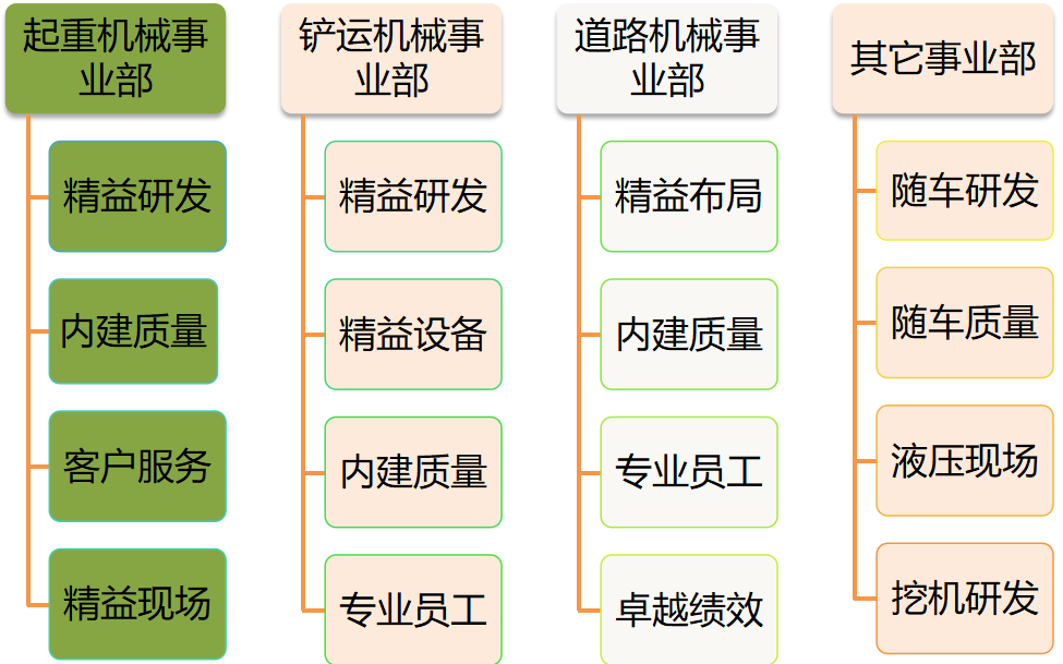 公司是一家中國工程機械行業(yè)排頭兵,目前位居世界工程機械行業(yè)第5位,中國500強企業(yè)第119位,中國制造業(yè)百強第44位,中國機械工業(yè)百強第2位,2012年銷售額突破1000億元,是中國工程機械行業(yè)規(guī)模最大、產(chǎn)品品種與系列最齊全、最具競爭力和影響力的大型企業(yè)集團,它下屬有18家事業(yè)部和分子公司。