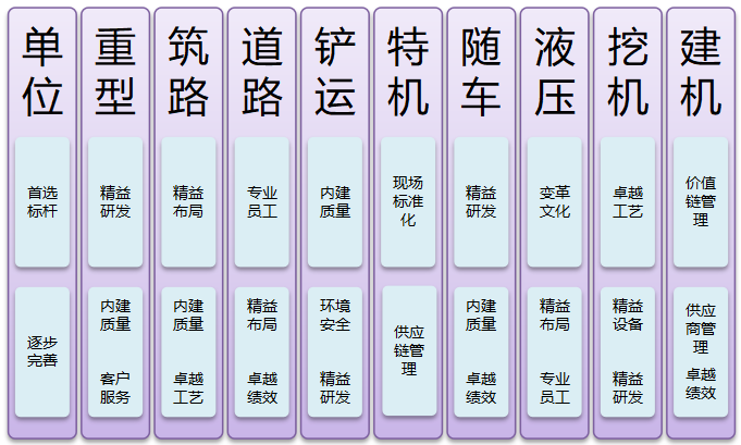 XPS根據(jù)A集團及所處行業(yè)的特點,建構(gòu)其獨具特色的模型,以A集團十二五戰(zhàn)略目標為愿景,制定了世界級企業(yè)關(guān)注的5大目標,工程機械行業(yè)運營中最重要的12大模塊,提煉出58項要素和235項要求。