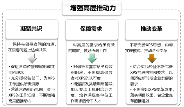 作為我們管理變革的重要武器!增加股東價值、滿足客戶變化、消除內(nèi)部損耗、加速流程運轉(zhuǎn)、質(zhì)量提升輸出、增強反應能力;經(jīng)過5年多的實施,已經(jīng)形成了比較完善的方法論體系和管理支撐體系,形成了不斷滿足客戶需求、有力支撐公司戰(zhàn)略的持續(xù)變革系統(tǒng)—XPS;