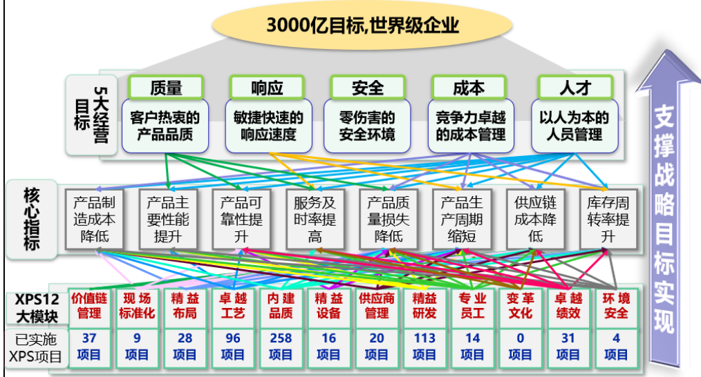 XPS的目標是幫助A成為世界頂級的企業(yè),世界頂級的企業(yè)必須能夠提供客戶認可的世界頂級的產(chǎn)品,滿足各種需要的世界頂級的質(zhì)量,行業(yè)最高的運營效率,具有競爭力的國際化人才,以及世界水平的管理運營模式。